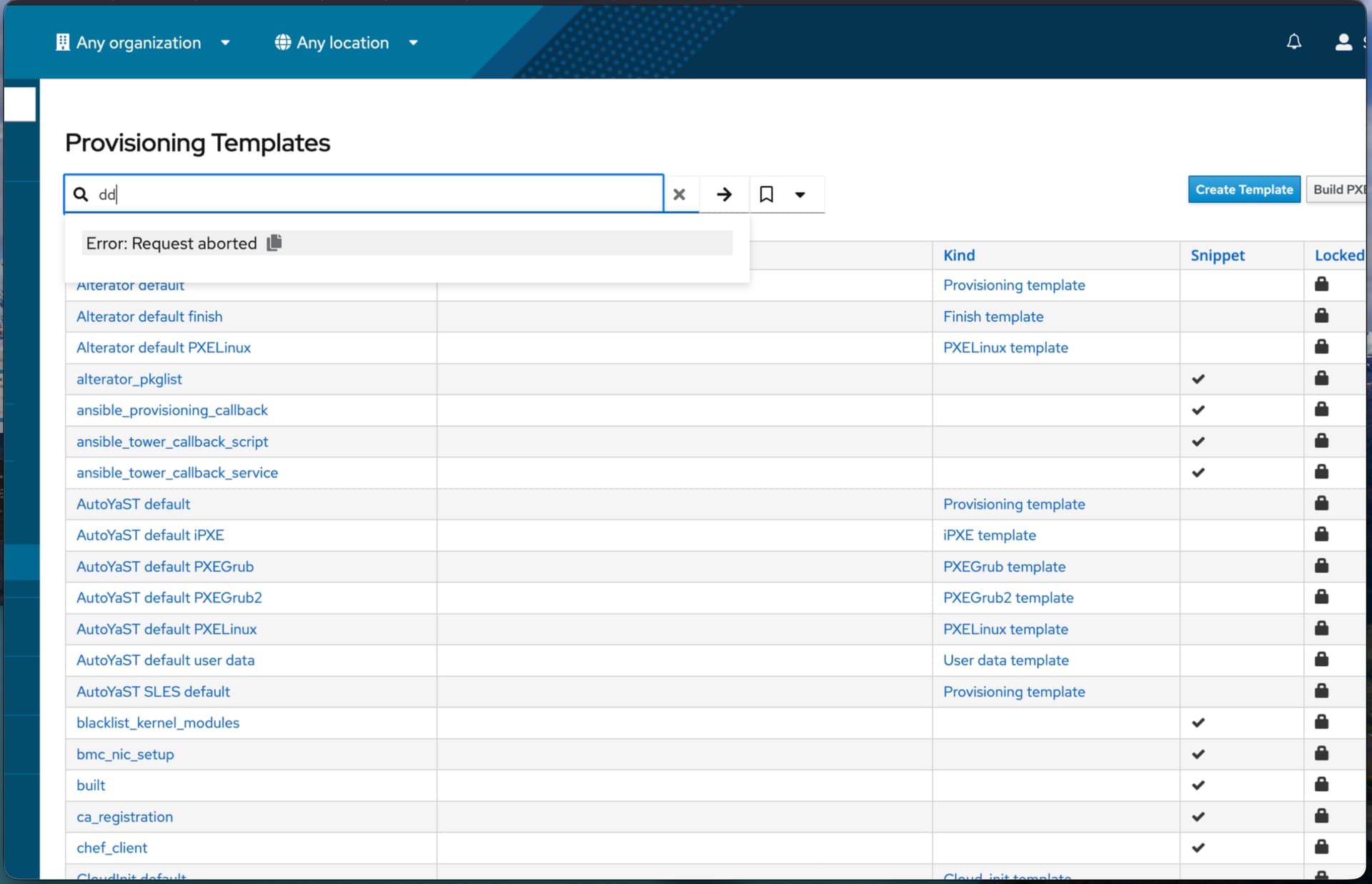 you could do for any query, for example in subnets page or hosts page, I search for something in search field fast and if the suggestions don’t load during that time , I see this error: