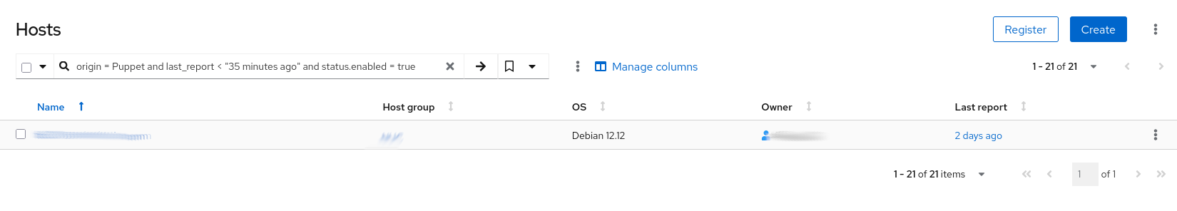 The hosts page is a lot cleaner, although unlike Ben I do prefer having the OS icons as I find them easier to recognise at a glance. Big ask obviously would be to be able to add facts to the manage columns option.