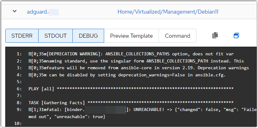 I had to “hack” the Ansible configuration to forcefully re-enable the color output that disapeared after one upgrade of Foreman a long time ago, but everything works smoothly in the actual “legacy” template_invocation view :