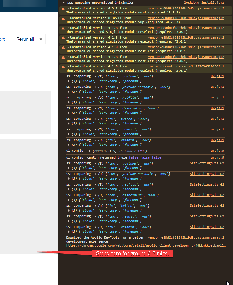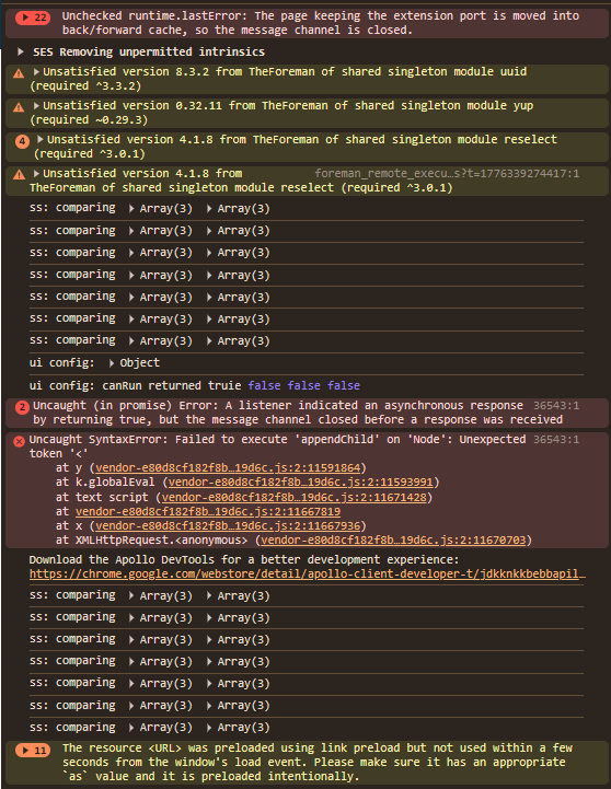 @aruzicka @MariaAga any ideas here? I don’t recognize any of those console errors.. And while I’m sure we didn’t test with 34k hosts, it should only be dealing with 25 at a time.